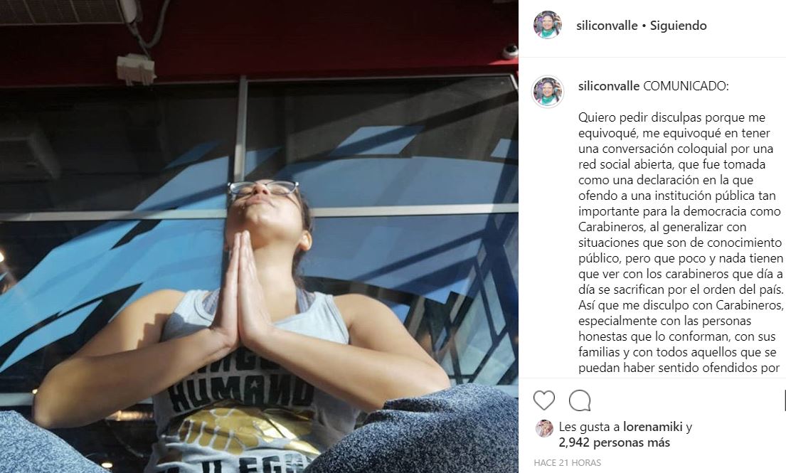 Lee también: Cata Pulido está arrepentida: “Debí haber pasado mis documentos y haberme quedado piola, nada más”Anteriormente, la profesional se había disculpado con la institución. “Me disculpo con Carabineros, especialmente con las personas honestas que lo conforman, con sus familias y con todos aquellos que se puedan haber sentido ofendidos por mis dichos”, aseguró.