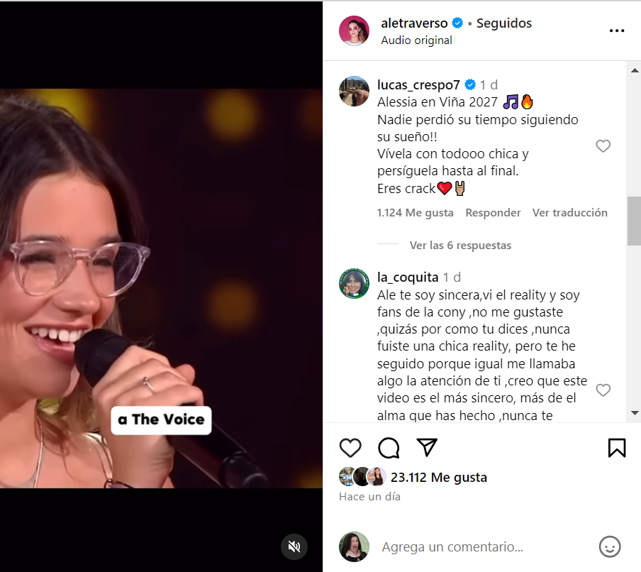 "Nadie perdió su tiempo siguiendo su sueño!! Vívela con todo chica y persíguela hasta al final. Eres crack", sostuvo luego