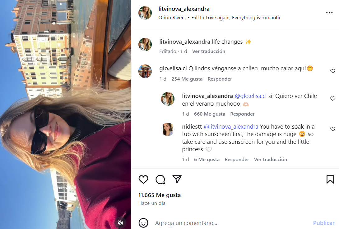 Así lo evidenció al responder el comentario “qué lindos, vénganse a Chile, mucho calor aquí”. Ante eso Litvinova respondió: “Sí, quiero ver Chile en el verano, mucho”.
