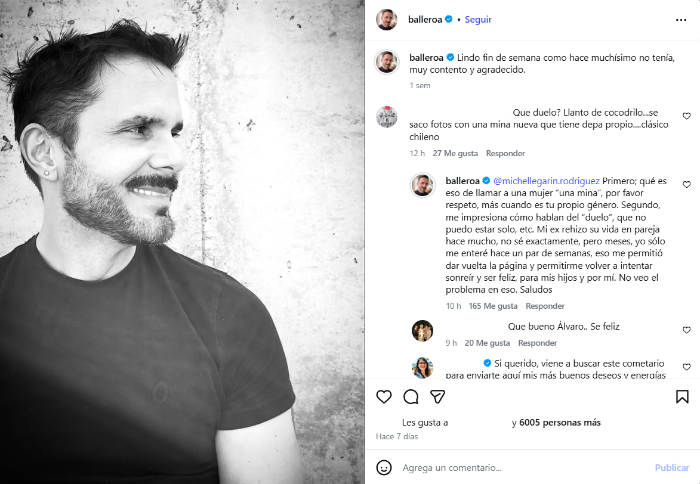 Esto, en respuesta al comentario de una internauta que lo criticó por su nueva relación. "¿Qué duelo? Llanto de cocodrilo... se sacó fotos con una mina nueva que tiene departamento propio, clásico chileno", le comentó una seguidora.