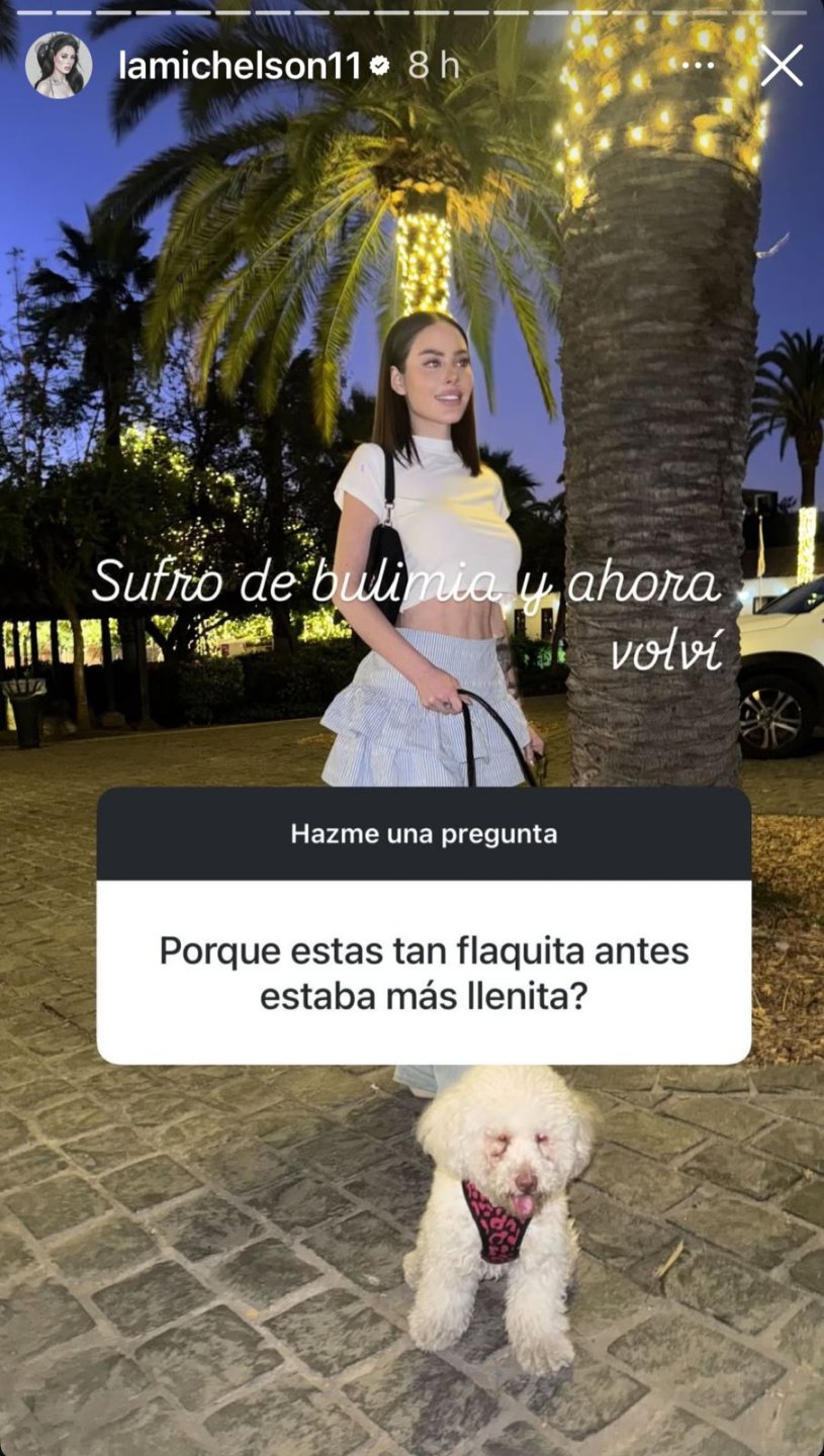 Cabe destacar que hace unos días, Michelson contestó las preguntas de sus seguidores, momento en que uno de ellos escribió: "¿Por qué estás tan flaquita? Antes estabas más rellenita".