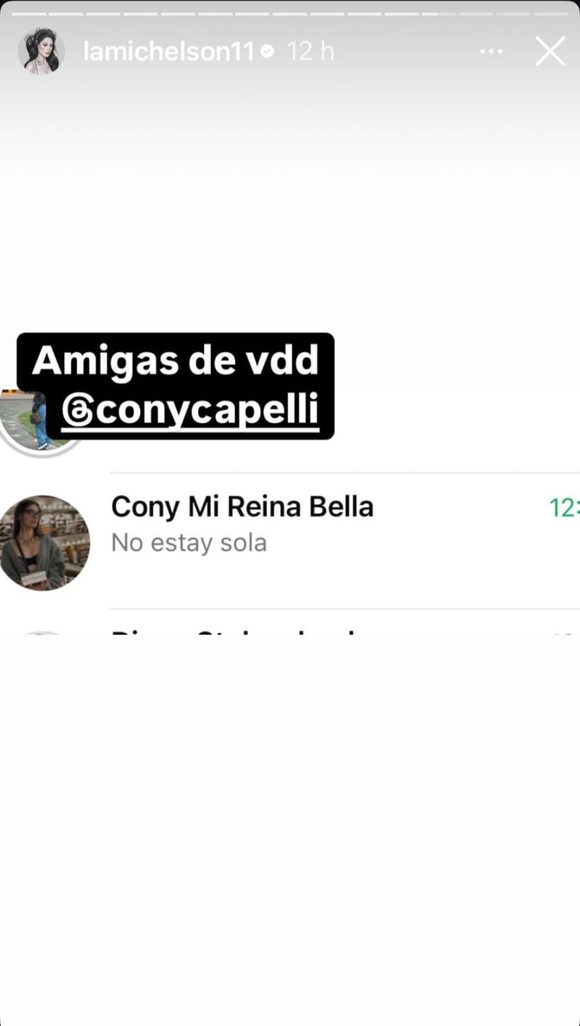 En dicha red social, Michelson publicó la captura de pantalla de una conversación con Capelli donde la bailarina le escribió: "No estás sola".