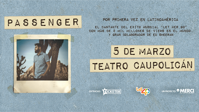 El martes 5 de marzo se presentará por primera vez en Chile el cantautor británico Passenger, amigo de la adolescencia de Ed Sheeran, a quien ha acompañado en sus conciertos de los últimos años, tanto en Estados Unidos como en Irlanda e Inglaterra.