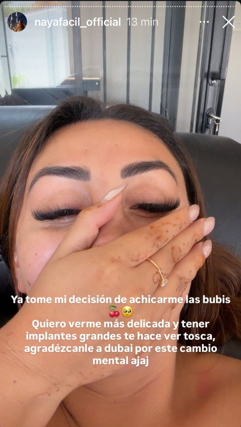Naya Fácil anunció este jueves que se someterá a una intervención estética para reducir el tamaño de sus implantes mamarios debido a su experiencia en Dubái.