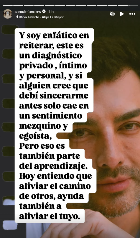 Tras las declaraciones de Rojas, Caniulef escribió una extensa declaración en sus historias de Instagram, donde explica por qué decidió contar su diagnóstico de VIH.