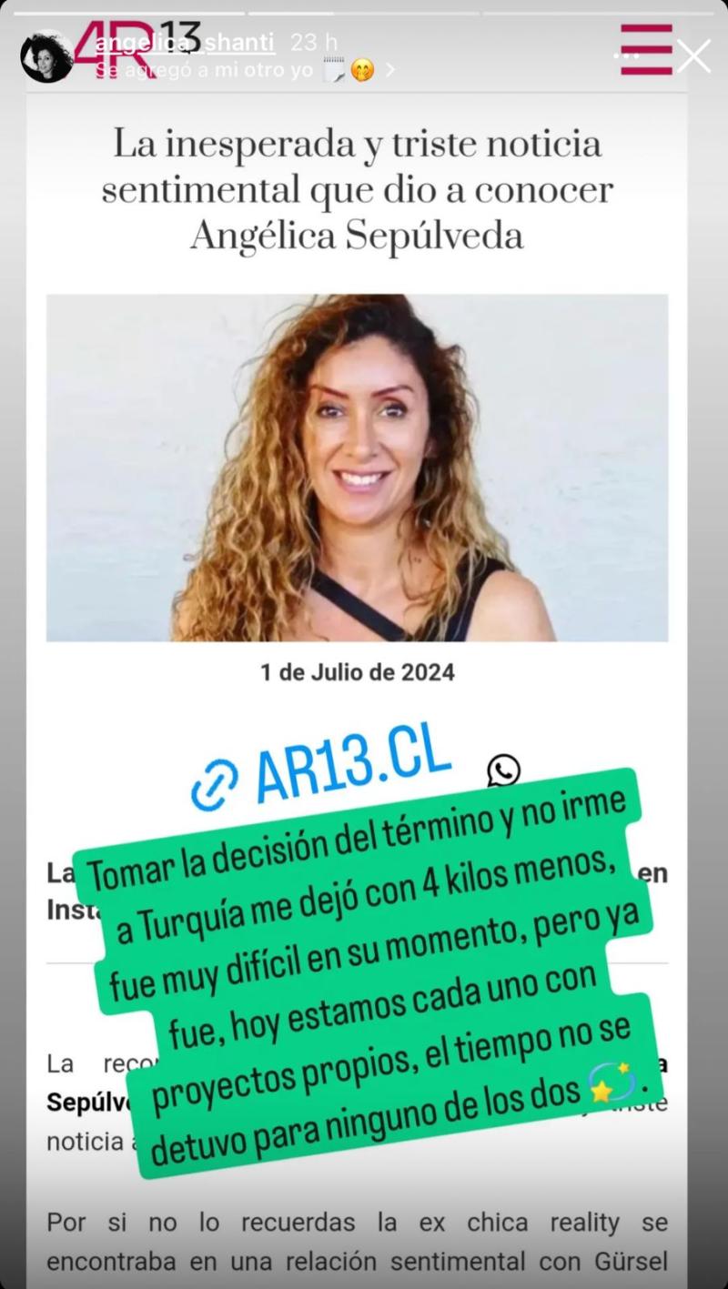 Para evitar malos entendidos, Angélica Sepúlveda utilizó sus redes sociales para aclarar que no existió ninguna intervención de otros por el quiebre con su pareja.