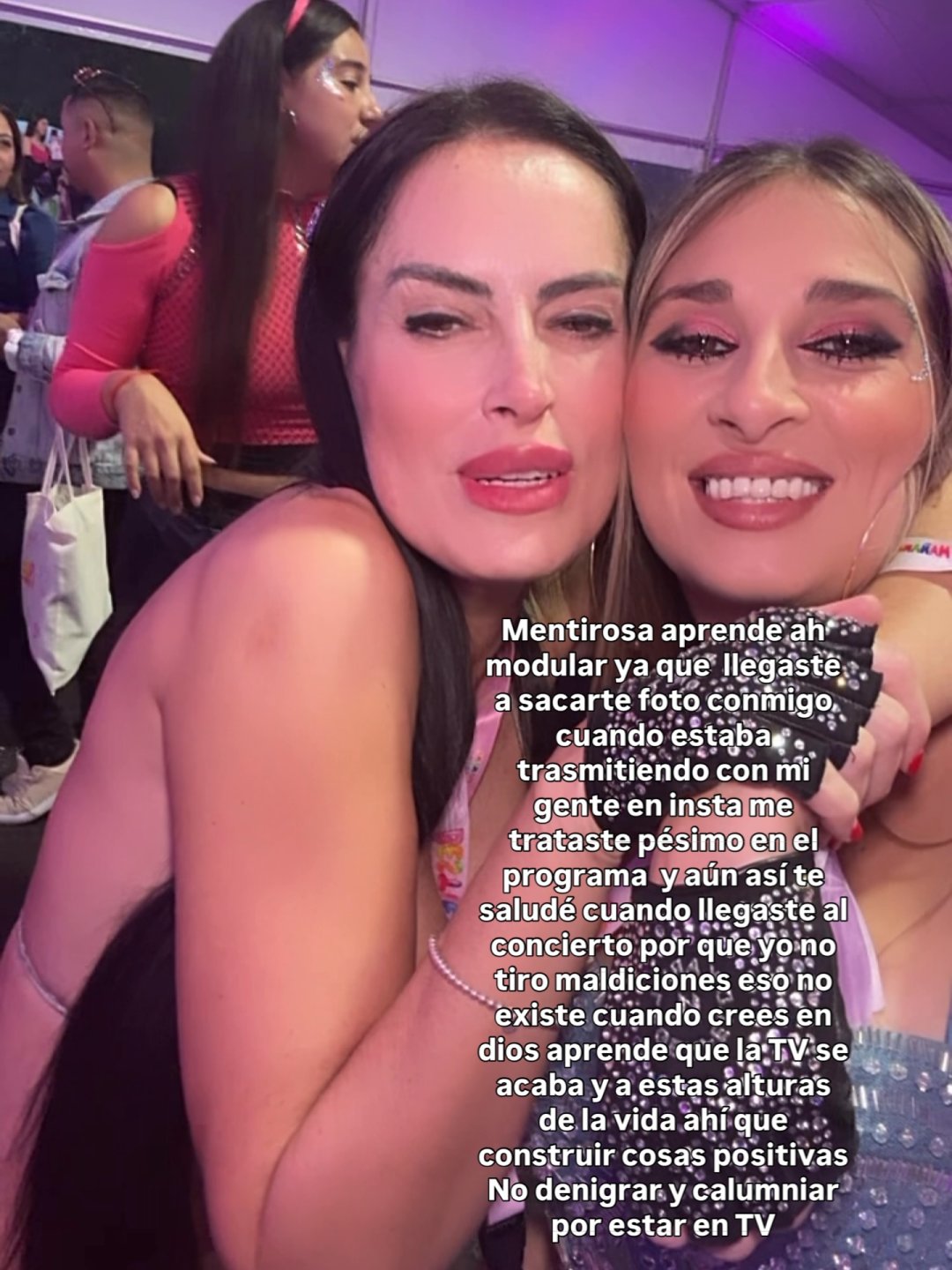 En esa línea, indicó: "Aprende a modular... Me trataste pésimo en el programa y aun así te saludé cuando llegaste al concierto porque yo no tiro maldiciones, eso no existe cuando crees en Dios, aprende que la televisión se acaba y a estas alturas de la vida hay que construir cosas positivas. No denigrar y calumniar por estar en TV".