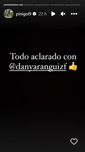 Sin embargo, un par de horas más tarde, borró esta historia y publicó otra historia, en la que señaló que estaba todo aclarado con Aránguiz.Instagram @pinigol9