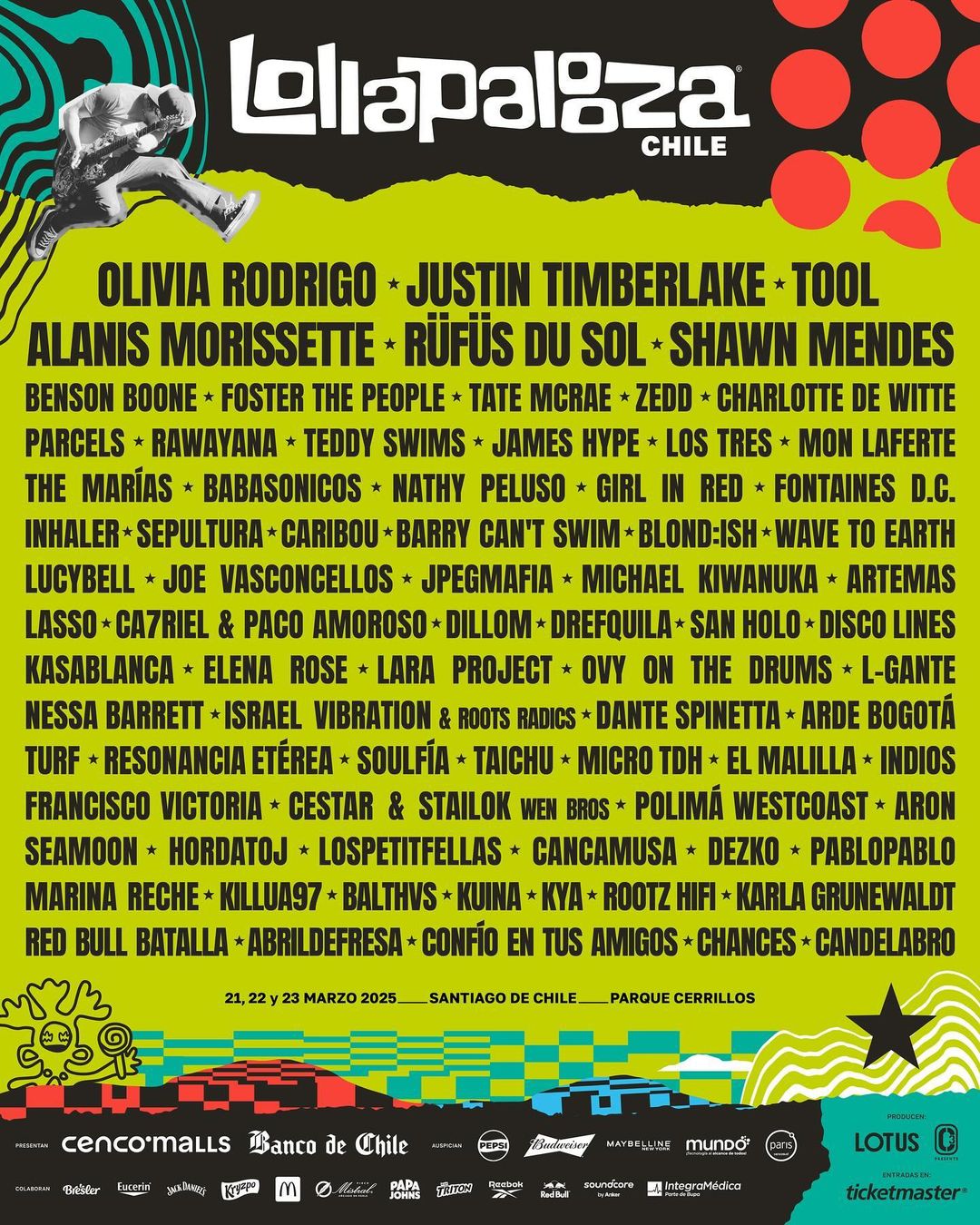 Lollapalooza Chile reveló este martes el lineup de su versión 2025, que se llevará a cabo el 21, 22 y 23 de marzo en el Parque Cerrillos.