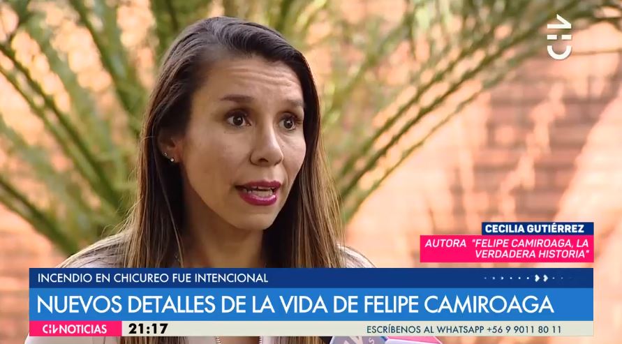 La periodista Cecilia Gutiérrez, autora del libreo “Felipe Camiroaga: La verdadera historia”, señaló que “por la venta del garaje se tiró una botella que tenía dentro combustible y se incendió”, dijo, agregando que “hay una persona que fue sindicada como la responsable en la investigación, se pudo determinar que fue esta persona la que provocó el incendio”, señaló, nombre del cual nunca trascendió, después que el rostro de televisión decidiera no presentar acciones judiciales en su contra.