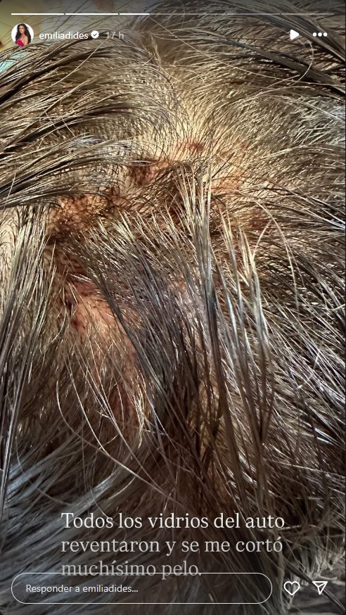 Según compartió en sus historias de Instagram, ella iba de copiloto en el vehículo y sufrió lesiones en su cuero cabelludo y en su mano, dejando secuelas que permanecen hasta el día de hoy.