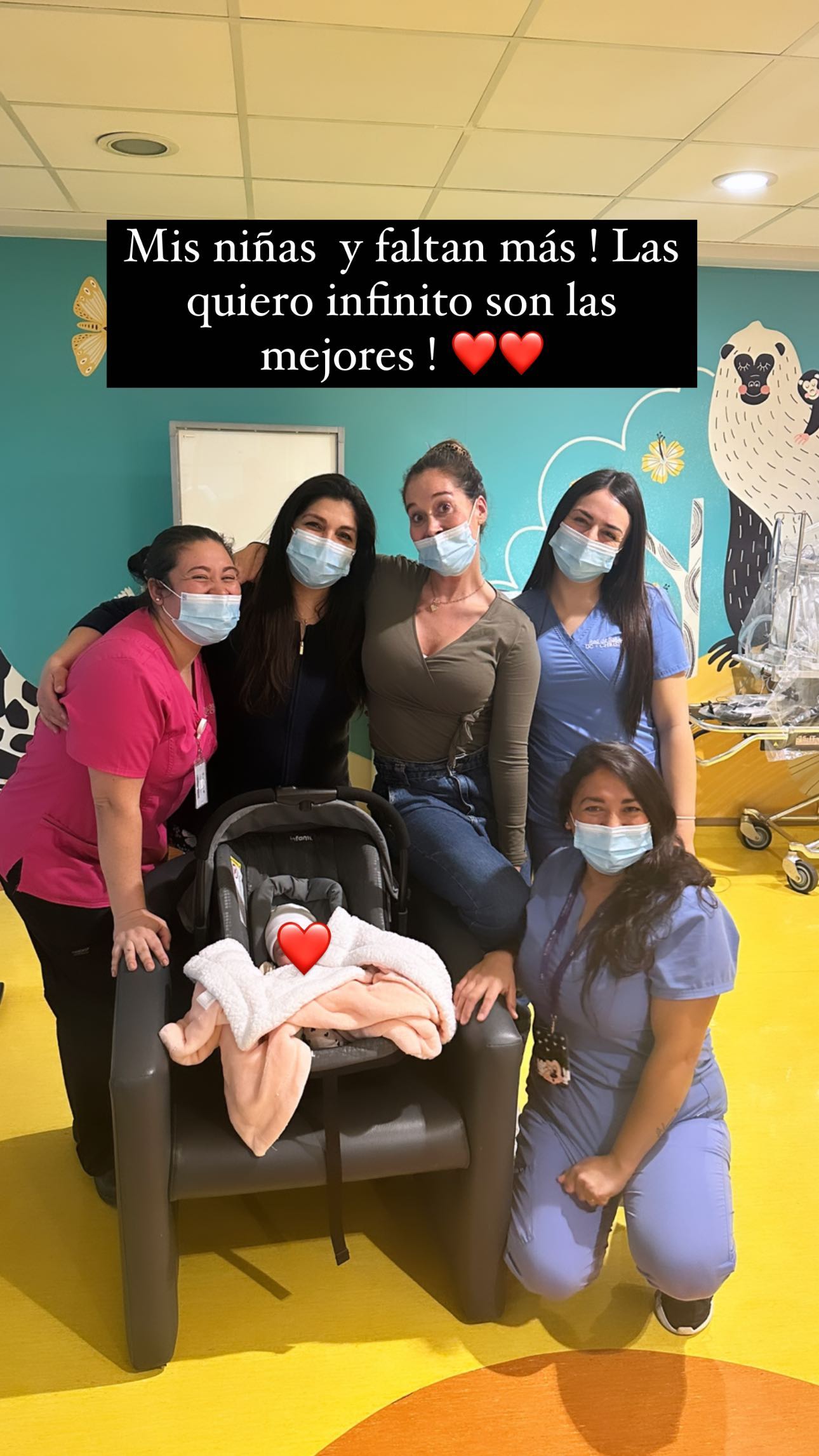 Durante la tarde de este domingo, la ex bailarina publicó un registro en el que aparece con las enfermeras que se encargaron de cuidar a la lactante. "De alta", escribió al publicar una imagen en la que se le ve evidentemente feliz. "Las voy a echar de menos chicas", dijo también en el video. Luego, publicó una foto con ellas y su hija. "Mis niñas y faltan más. Las quiero infinito, ¡son las mejores!", afirmó.