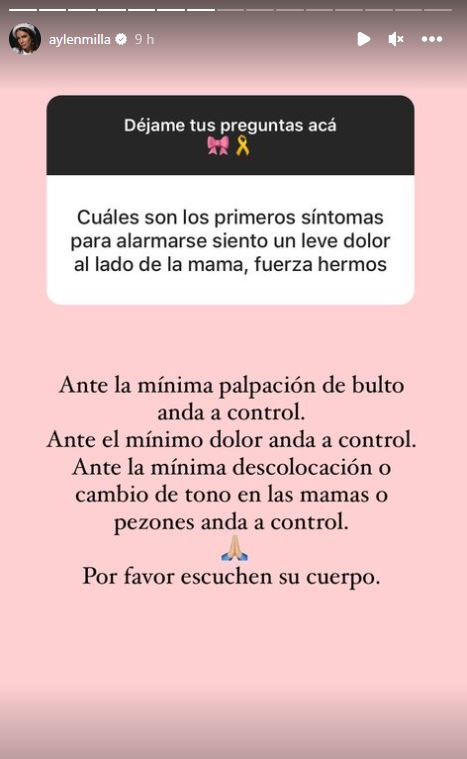 Aylén Milla se ha encargado de compartir parte de este difícil proceso con sus seguidores y seguidoras en