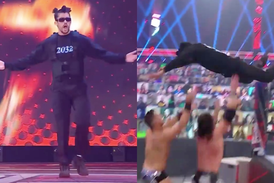 Bad Bunny cumplió más de un sueño de infancia el domingo por la noche, cuando llegó al escenario del Royal Rumble 2021.