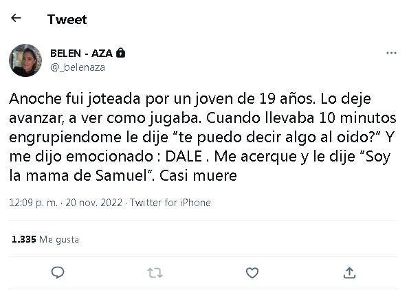 Continuando con su relato, la actriz indicó que "me dijo emocionado 'dale'. Me acerqué y le dije 'Soy la mamá de Samuel'".
