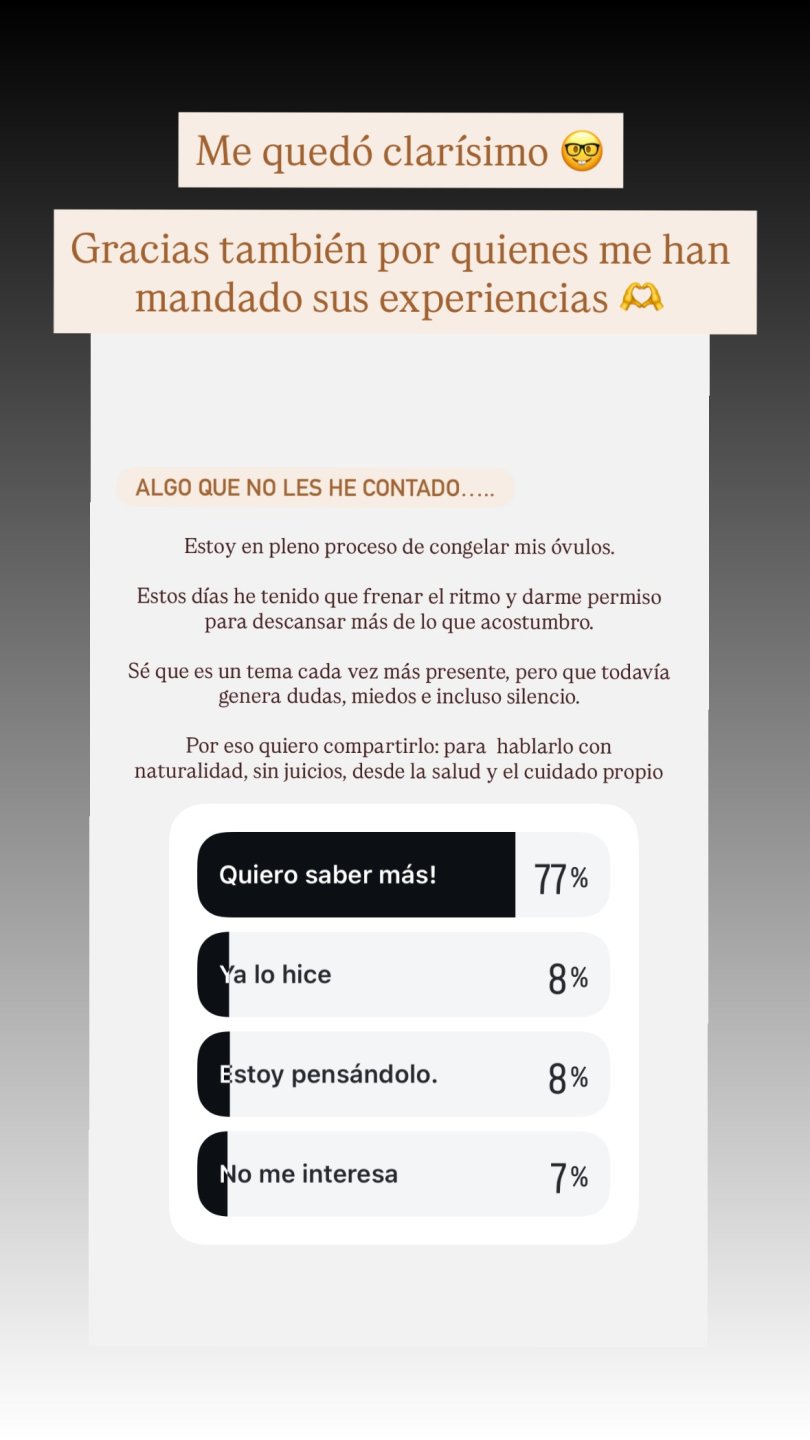 Finalmente, Kika Silva comentó que cada proceso es “muy personal”, ya que ha conocido distintas experiencias de mujeres que decidieron congelar sus óvulos.