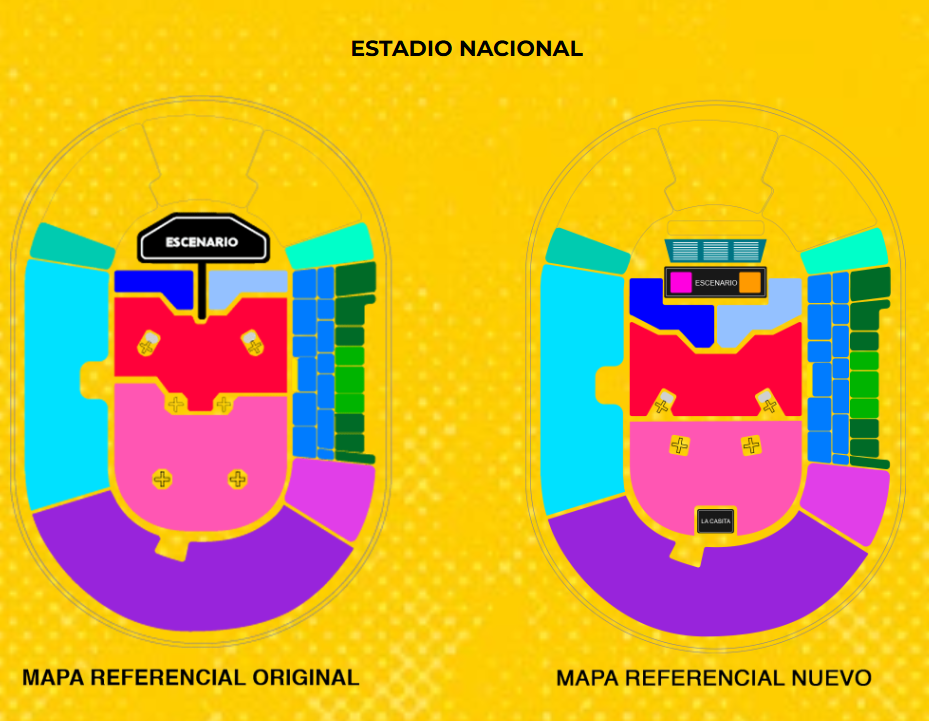 Por otro lado, se eliminó la pasarela que en el plano inicial conectaba "PIT DtMF Izquierdo", "PIT DtMF Derecho" y "BAILE INoLVIDABLE" (Cancha VIP).