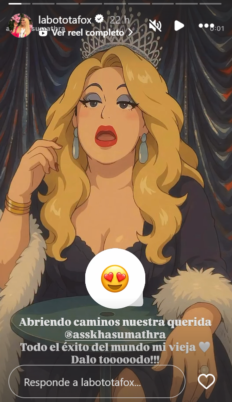 "Abriendo caminos nuestra querida Asskha Sumathra. Todo el éxito del mundo, mi vieja. Dalo toooodo!!!", escribió a través de sus historias de Instagram.