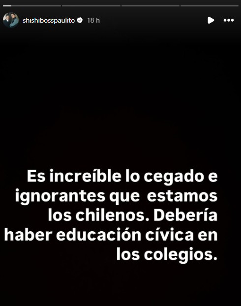 "Es increíble lo cegados e ignorantes que estamos los chilenos. Debería haber educación cívica en los colegios", apuntó en su cuenta de Instagram.