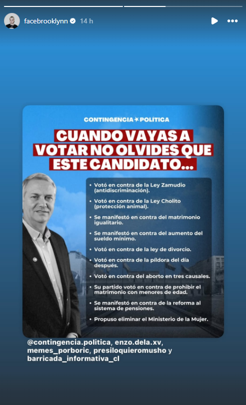 A través de Instagram, Trinidad Riveros publicó una historia afirmando que "en este perfil no somos de ultra derecha y lo saben".
