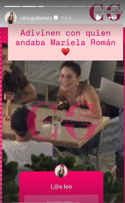 La panelista de Primer Plano compartió una foto en sus historias de Instagram en la que se aprecia a Mariela Román compartiendo en lo que parece ser una terraza o restaturante en compañía de un hombre al que no se le ve el rostro.
