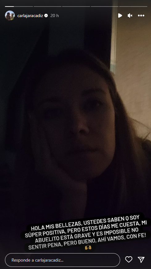 Si bien no detalló qué tipo de enfermedad afecta al adulto mayor, la también influencer indicó que "ustedes saben que soy súper positiva, pero estos días me cuesta. Mi abuelito está grave y es imposible no sentir pena. Pero bueno, ahí vamos con fe".