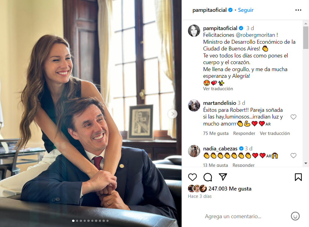 Carolina Ardohaín, también conocida como Pampita, destacó el nombramiento de su esposo, Roberto García Moritán, como nuevo
