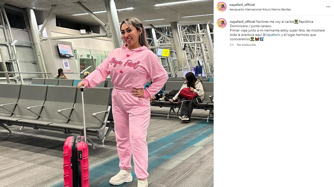 Primer viaje junto a mi hermanita, estoy súper feliz. Les mostraré toda la aventura y el lugar hermoso que conoceremos", escribió junto a un post en el que se le ve en el Aeropuerto de Santiago, vistiendo un particular