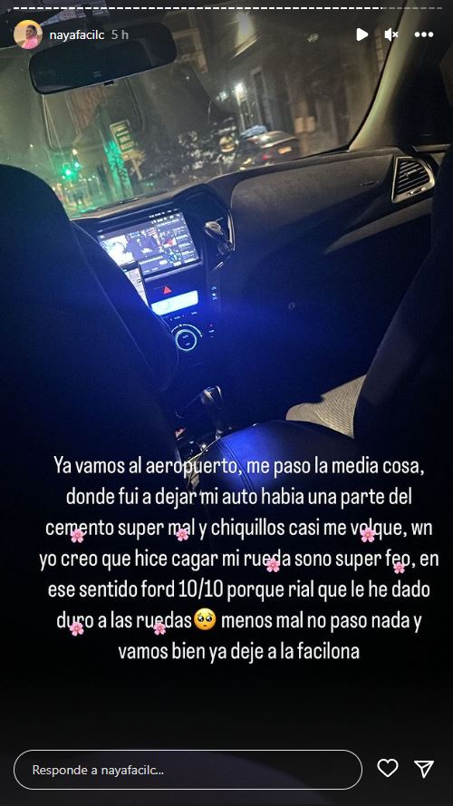 Pero como contó en sus historias, "donde fui a dejar mi auto había una parte del cemento súper mal,