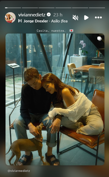 Por su parte, Vivianne Dietz compartió una imagen en sus historias de Instagram en la que aparece con su pareja y su perro, junto al mensaje “casita, nuestra”.