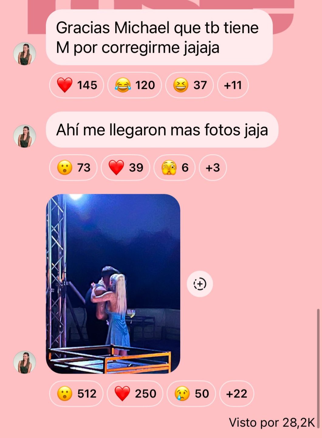Luego, Cecilia publicó una segunda imagen donde ambos están en un evento y Valentina aparece abrazando a Miguel por el cuello mientras le habla al oido.