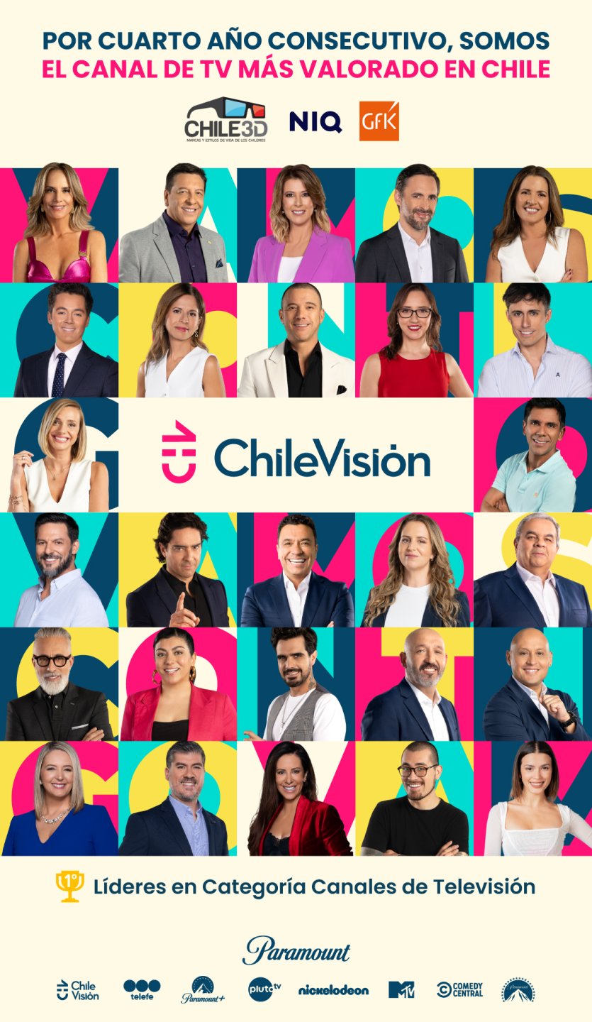 Por cuarto año consecutivo, Chilevisión se posicionó como el canal de televisión abierta más valorado del país, de acuerdo al estudio Chile 3D de GFK Nielsen.