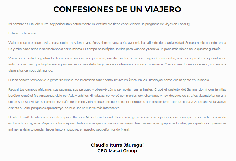 Una emotiva columna dejó el fallecido periodista Claudio Iturra en el sitio web de su agencia de viajes, Masai Travel, donde escribió una especia de bitácora personal en la que plasmó su gran pasión por los viajes.