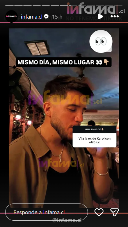 Horas después, el portal Infama publicó el relato de una persona que escribió: "Vi a la ex de Karol con otro", en alusión a Virgilio.