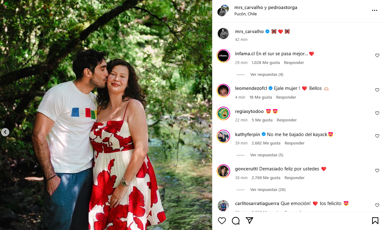 No obstante, uno de los comentarios que llamó más la atención vino de Carlos Arratia, manager de la brasileña, quien escribió "Qué emoción! los felicito". Luego, Carvalho respondió el mensaje de su representante con un corazón.