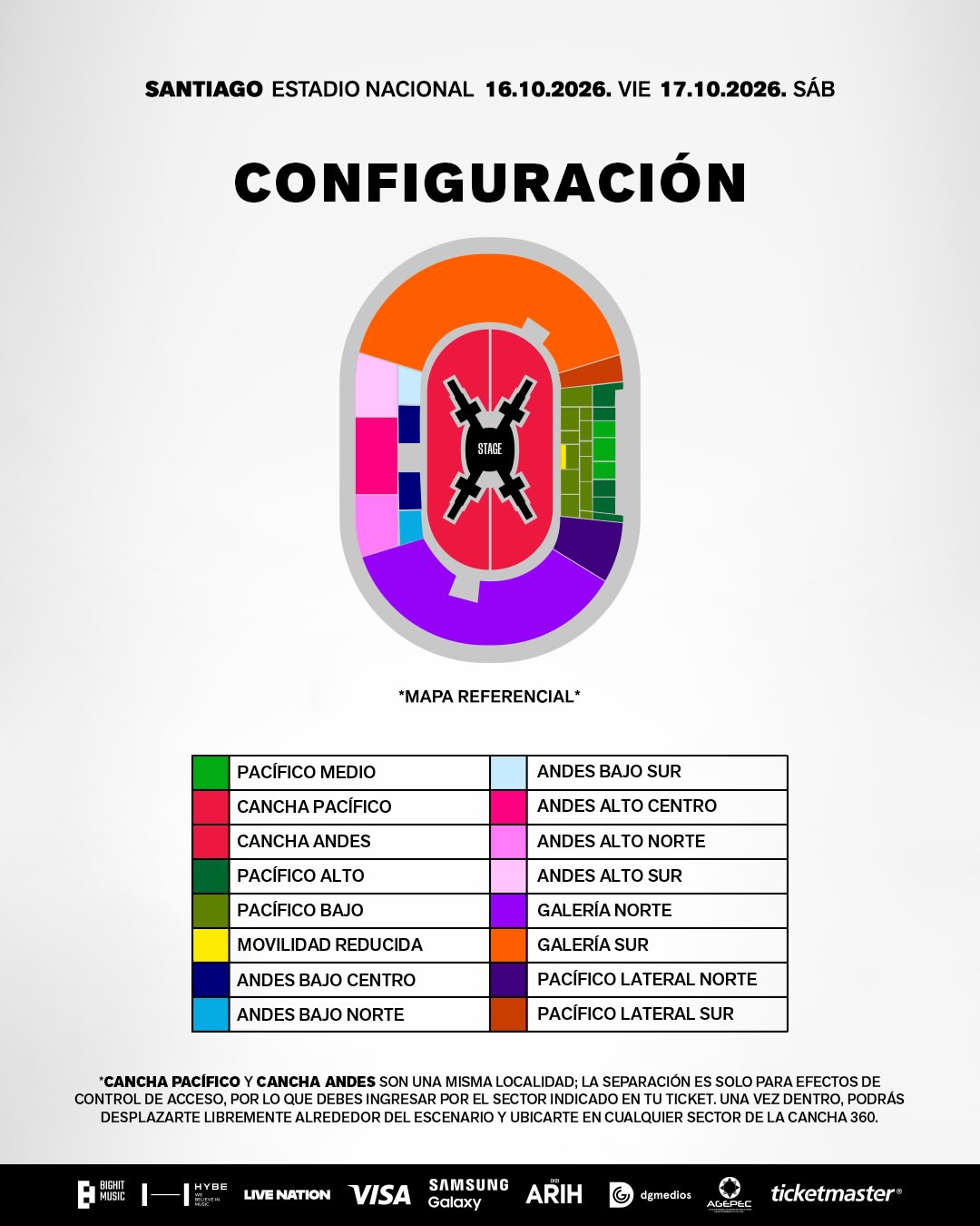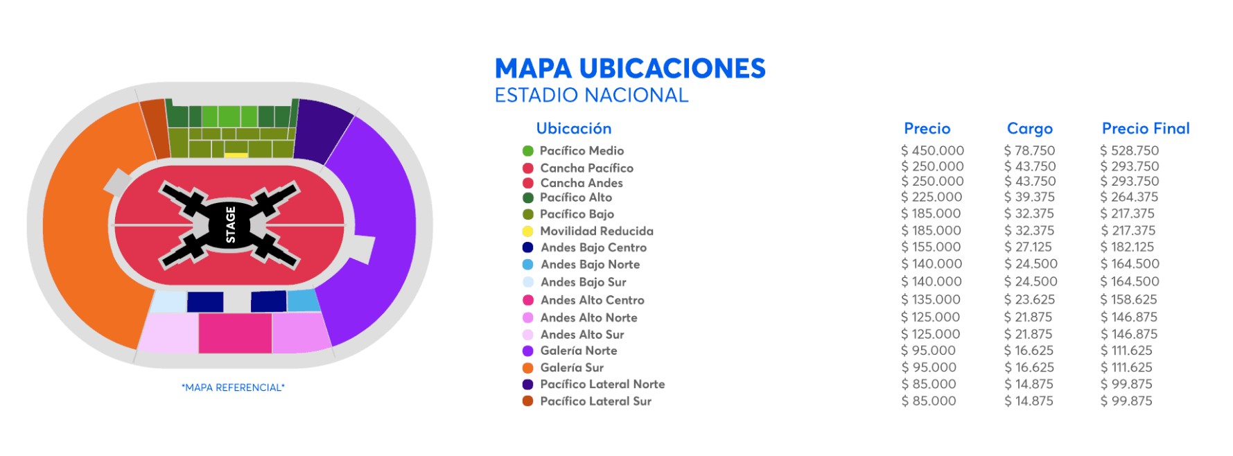 Junto a esto, también especificaron cómo se dividirán las locaciones al interior del recinto para el concierto.