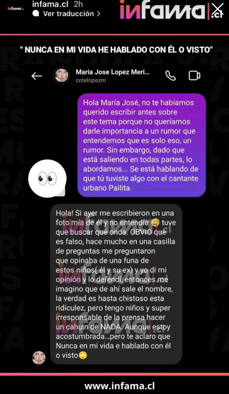 Obvio que es falso, hace mucho en una casilla de preguntas me preguntaron qué opinaba de una funa de estos niños (él y su ex) y yo di mi opinión y lo defendí, entonces me imagino que de ahí sale el nombre”, precisó.