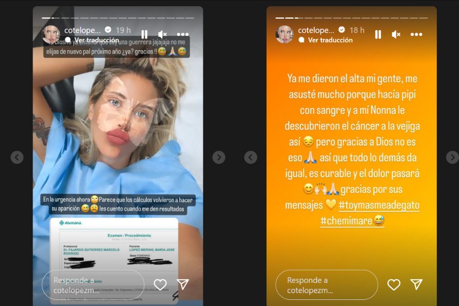 La influencer y ex modelo Coté López dio a conocer la noticia a sus seguidores a través de las historias de Instagram, donde detalló que "a mi nona le descubrieron el cáncer a la vejiga así, pero gracias a Dios no es eso".