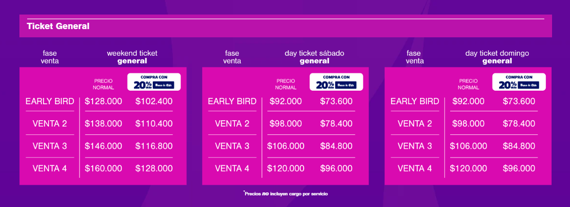 Creamfields Chile ha implementado un Plan de Reserva, que permite asegurar la entrada con un abono inicial de $40.000.