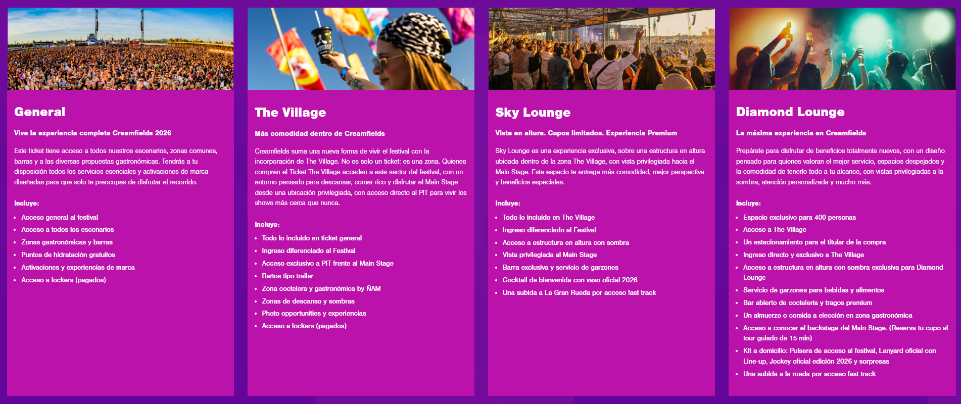 Además del ticket general, se suman tres nuevas categorías diseñadas para quienes buscan beneficios y niveles de exclusividad distintos: