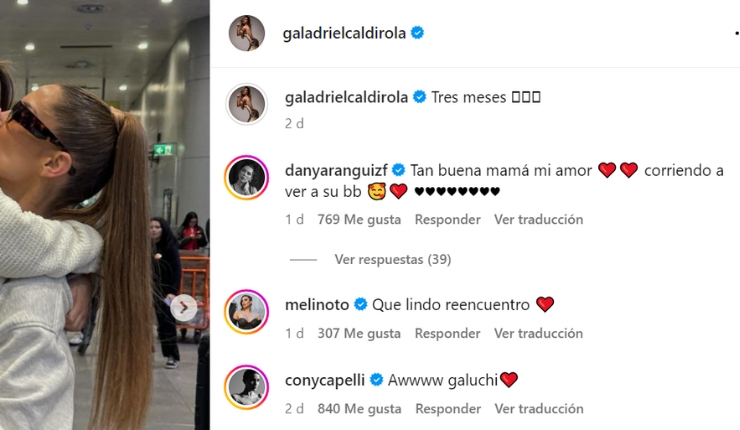 Bajo ese contexto, Aránguiz comentó una reciente publicación de Gala Caldirola, quien fue compañera de encierro de Daniela Collet, donde se observa el emotivo reencuentro con su hija.