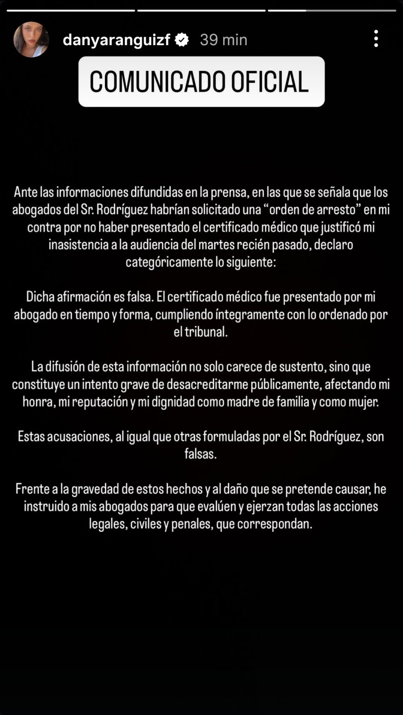 Sin embargo, la propia Daniela Aránguiz desmitió que ese sea el caso a través de un comunicado que compartió en sus historias de Instagram.