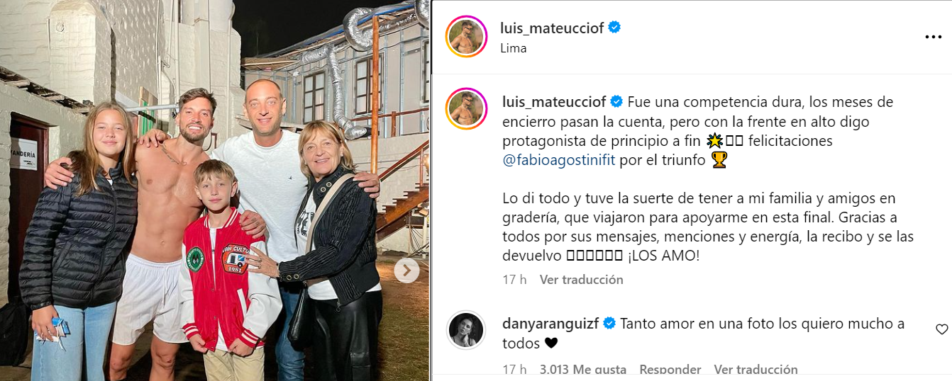 En las fotos, aparece Mateucci acompañado por su familia y escribió que "viajaron para apoyarme en esta final".