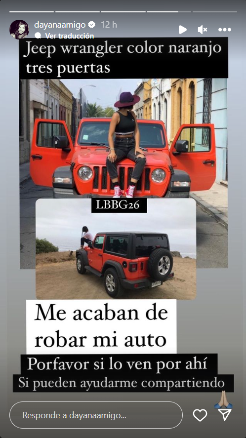 Me acaban de robar mi auto. Por favor si lo ven por ahí”, escribió en la publicación.