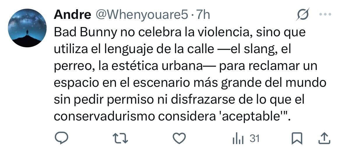Su publicación no tardó en repletarse de comentarios de usuarios que defendían la presentación del puertorriqueño.