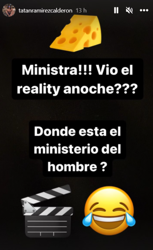 "¿Ministra vio el reality anoche? ¿Dónde está el ministerio del hombre?", escribió Ramírez en una historia de