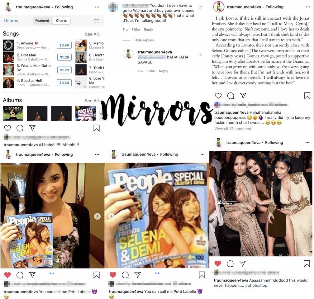 Varios pantallas fueron viralizados en Twitter. En uno de ellos se ve a Demi sosteniendo una revista People en la que ambas ex rostros de Disney figuran en la portada, con la cara de Selena rayada.