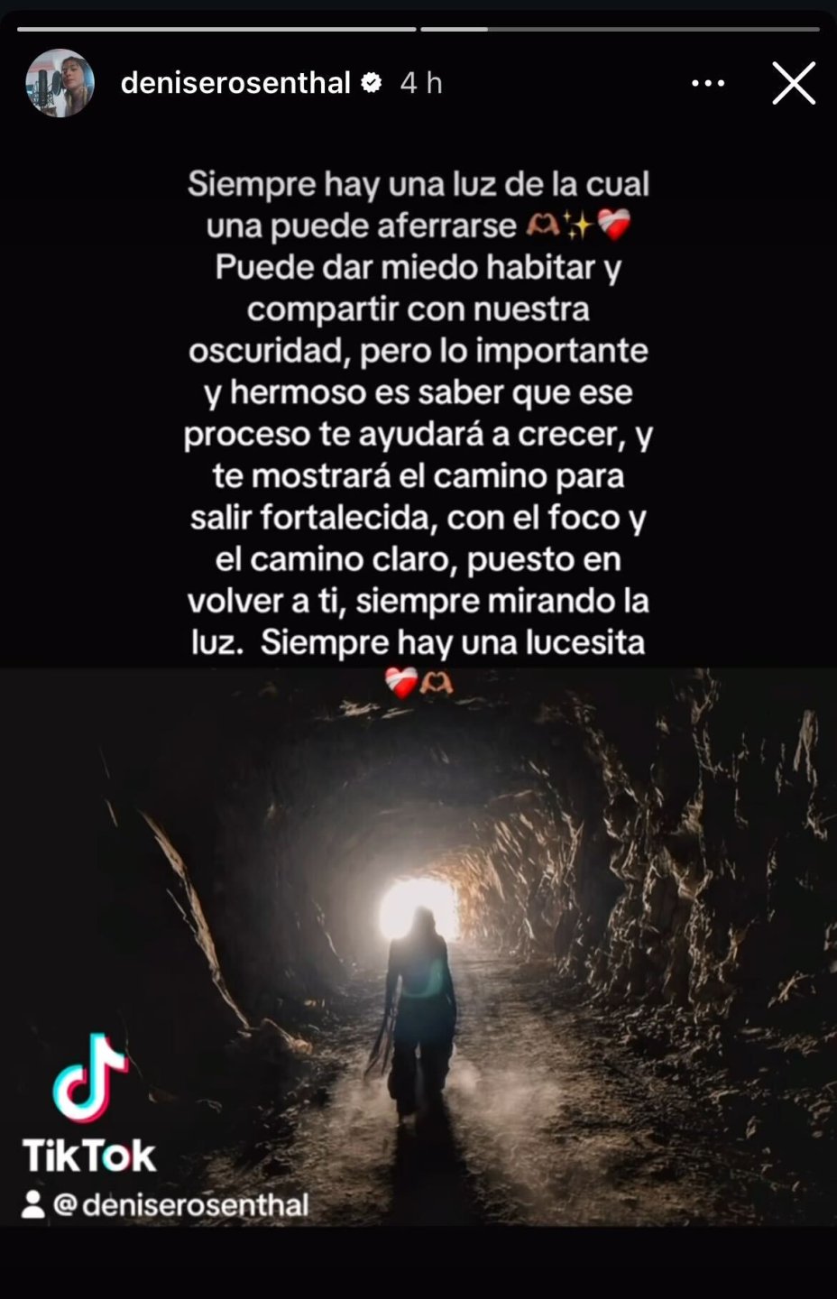 "Te mostrará el camino para salir fortalecida, con el foco y el camino claro, puesto en volver a ti, siempre mirando la luz. Siempre hay una lucecita", cerró en el mensaje.