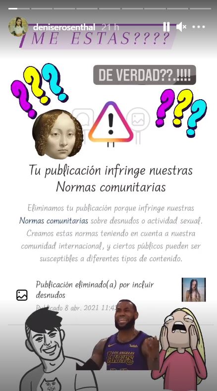 Ese fue el caso de Denise Rosenthal, quien desafió a la red social luego de que le bajaran una publicación con una fotografía de ella con torso desnudo en la playa.