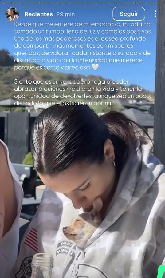"Desde que me enteré de mi embarazo, mi vida ha tomado un rumbo lleno de luz y cambios positivos. Uno de los más poderosos es el deseo de compartir con mis seres queridos y valorar cada instante a su lado", fue parte del primer mensaje que entregó Emilia Dides.